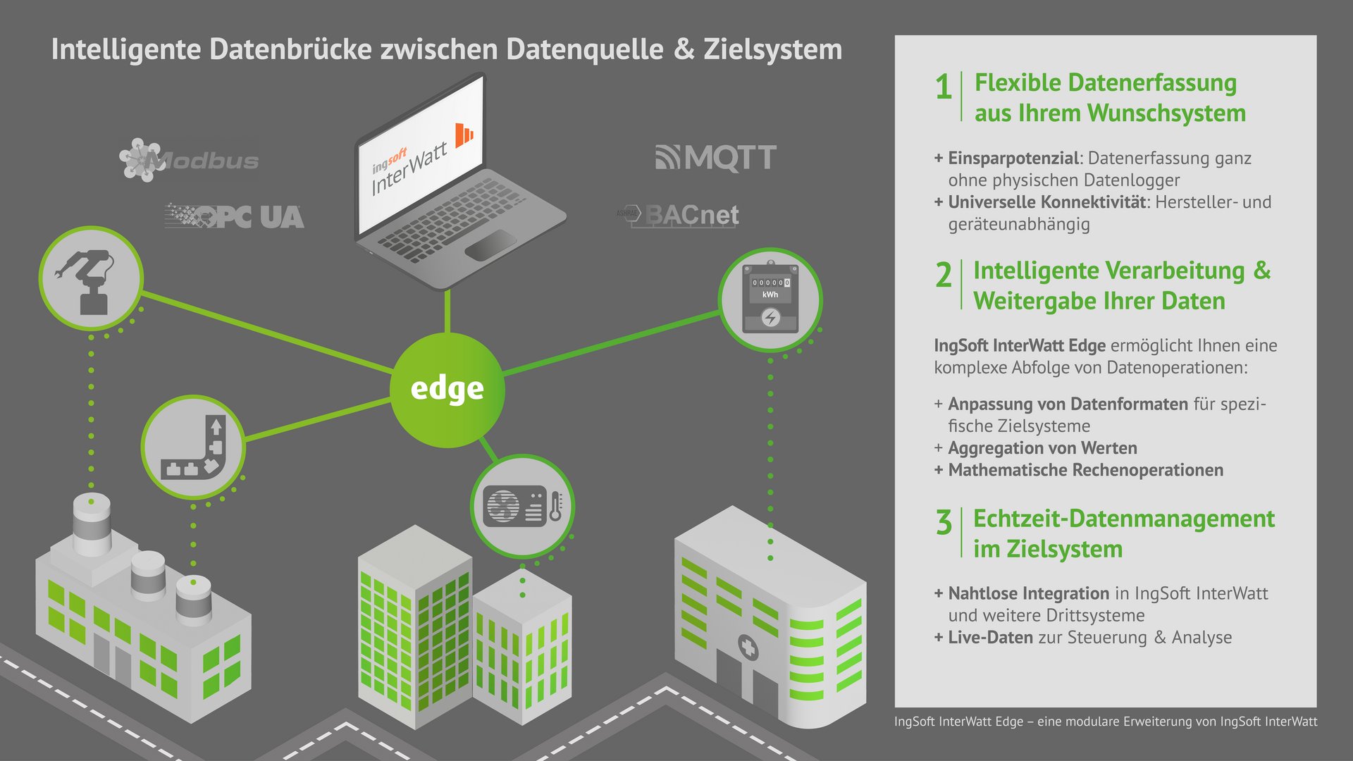 Bei IngSoft InterWatt Edge handelt es sich um eine modulare Erweiterung von IngSoft InterWatt, die als Zusatz erworben werden kann.